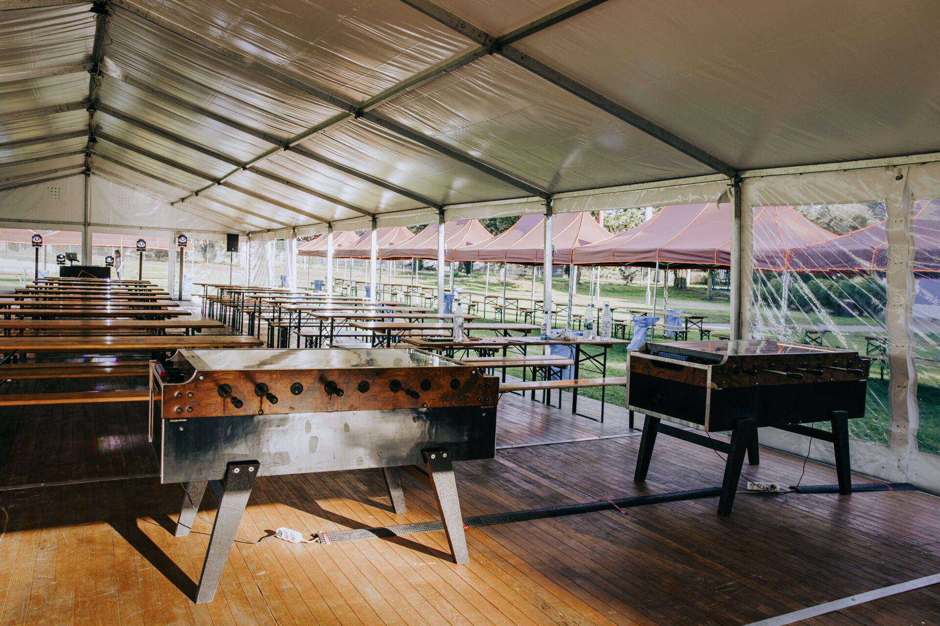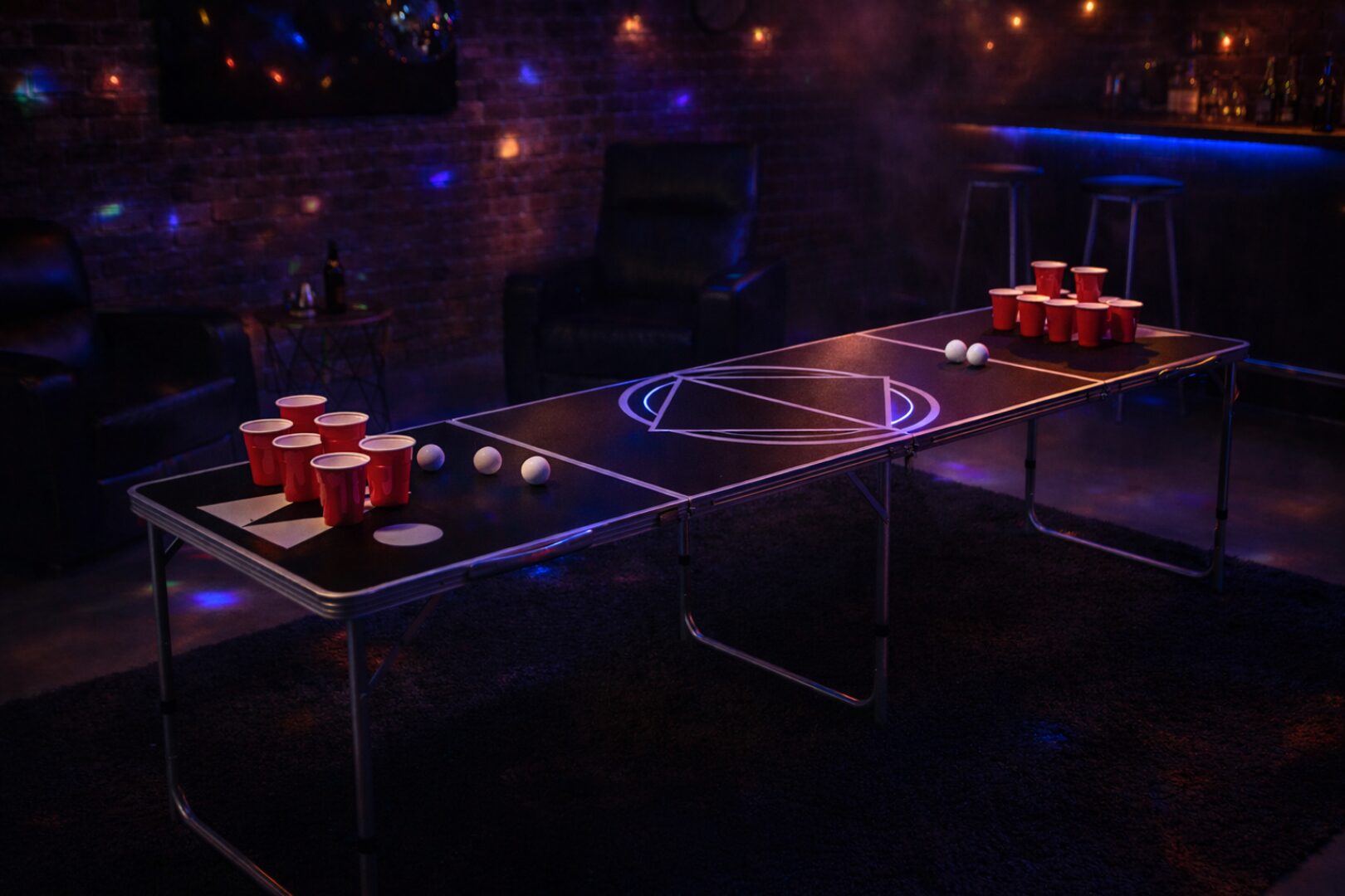Prosta alkoholowa gra zręcznościowa w wersji eventowej, doskonale znana z amerykańskich filmów i seriali studenckich. Stanowisko Beer Ponga stanowi ciekawą alternatywę dla klasycznych gier, takich jak rzutki. Doskonale uzupełnia zabawę taneczną oraz inne aktywności eventowe. Dodatkowym elementem jest koło fortuny, które wprowadza do gry losowe wyzwania, np. rzut z zamkniętymi oczami lub z kolan – gwarantując dużo śmiechu i pozytywnych emocji. Gra odbywa się na specjalnie przygotowanym stole z ustawionymi kubkami wypełnionymi różnymi napojami (drinki, soki, inne trunki). Zawodnicy rzucają piłeczkami do ping-ponga, starając się trafić do kubków drużyny przeciwnej. Za każdy trafiony kubek drużyna przeciwna wypija jego zawartość. Wygrywa drużyna, która jako pierwsza trafi wszystkie kubki przeciwnika.