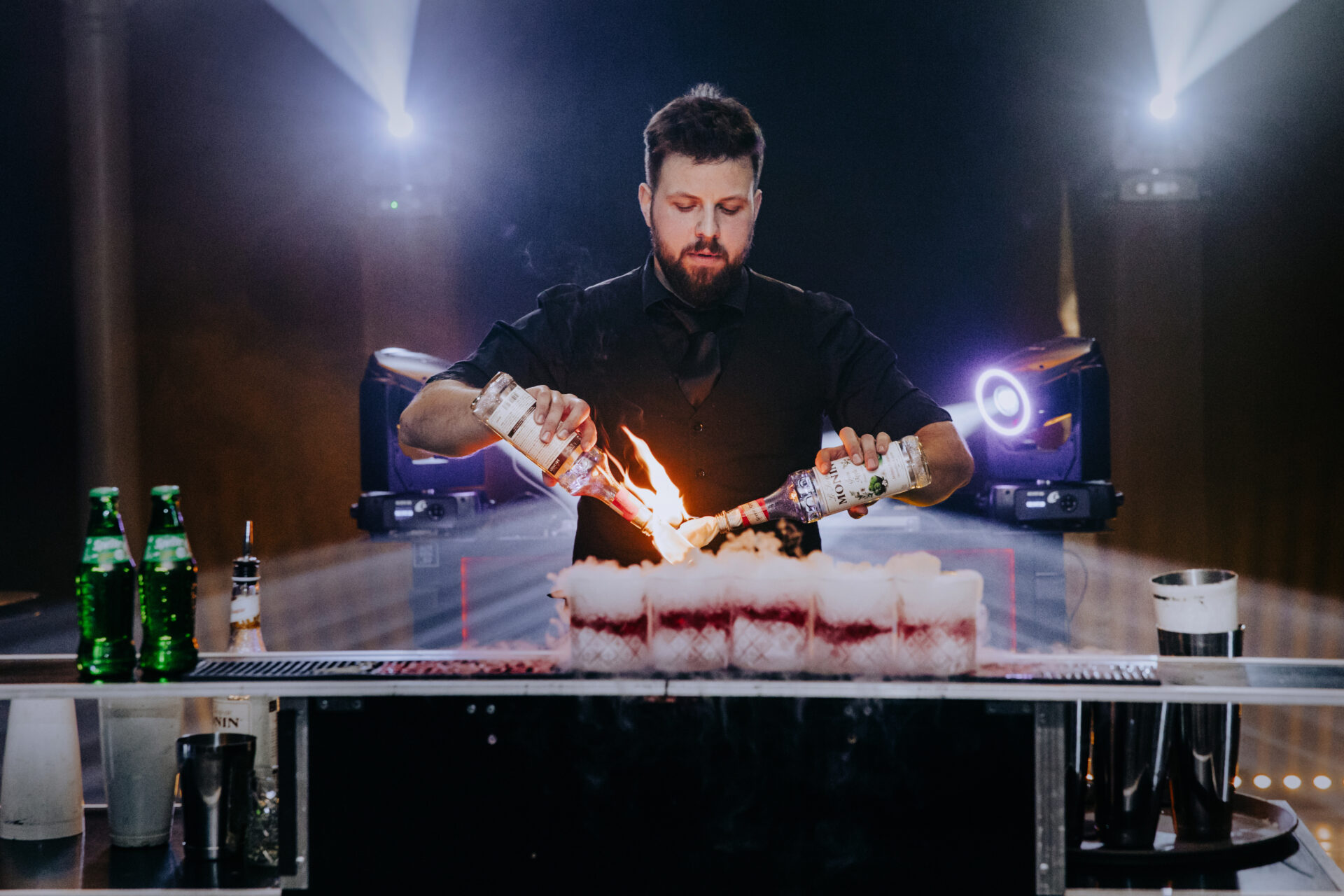 Efektowne show pełne flairu, kolorowych drinków i dobrej energii. Profesjonalny barman nie tylko serwuje widowiskowe triki, ale także aktywnie wciąga gości do wspólnej zabawy – konkursów, wyzwań i tworzenia własnych koktajli. To idealne połączenie rozrywki, integracji i niezapomnianej atmosfery, które rozkręca każdy event.